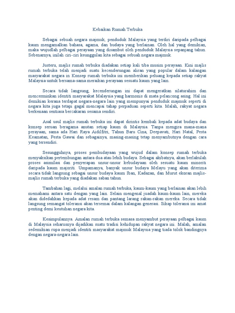 Doc Karangan Cemerlang Spm Kebaikan Amalan Rumah Terbuka Najat Ruhi Academia Edu